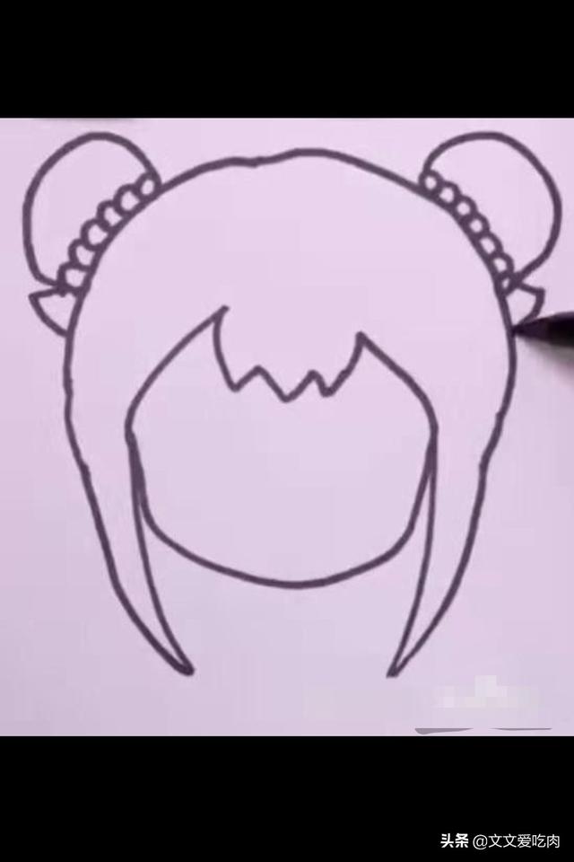 2、画出头上的发髻和头饰。见下图