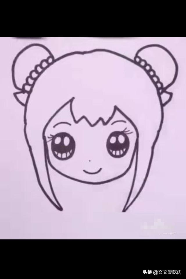 3、接着画出头形和刘海,然后脸庞和眼睛。