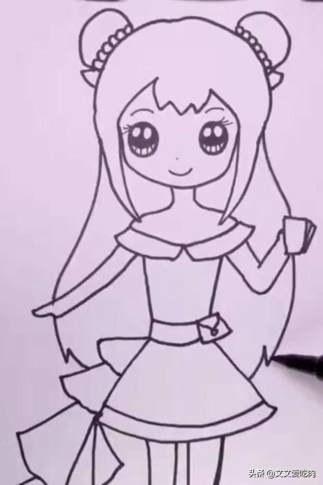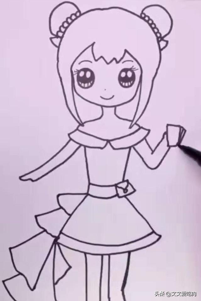 6、然后画出王默漂亮的衣服和裙带。