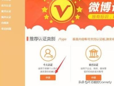 4、点击申请认证。进入到认证页面。新浪认证分为,个人加V认证和官方加V认证和自媒体认证。个人申请只要点击新浪个人认证。